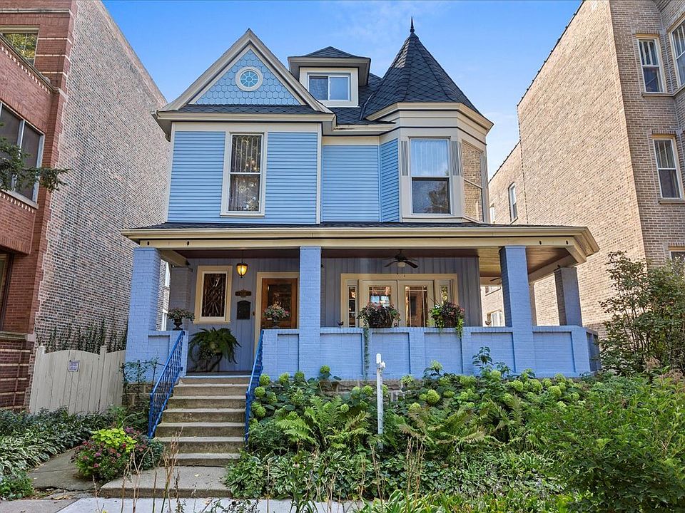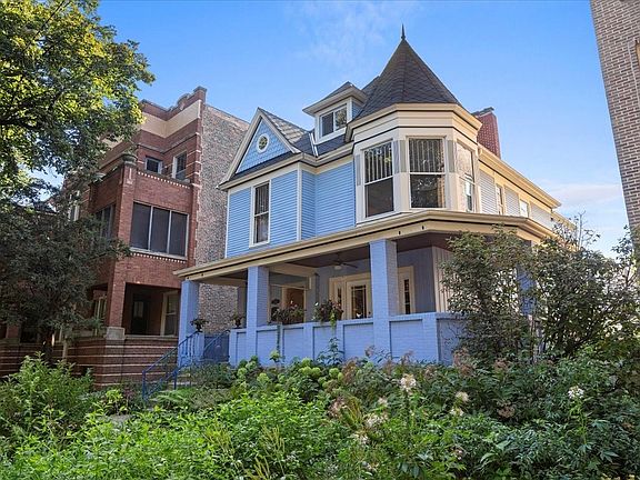 Welcome to this one-of-a-kind 1895 Queen Anne stunner, tucked away on a peaceful, tree-lined street in the heart of Edgewater Glen. With its stately presence, wrap-around porch, and storybook gardens, this home feels like something out of a magazine-but with all the modern comforts you crave. Sitting proudly on a rare double lot, this gem offers over 2,900 sq ft of living space/above grade and 1,160 feet in the basement, for a total of 4,060 square feet, and a backyard paradise with perennial flowers, a veggie patch, and plenty of space for summer parties, backyard games, or simply lounging with your favorite book. The exterior has been lovingly cared for with premium Hardy Board siding and a custom roof (2014). Two oversized 2.5-car garages? Yes, you read that right-perfect for cars, hobbies, or creating your dream workshop. Inside, every detail has been reimagined with style and craftsmanship. Newly installed teak hardwood floors and custom millwork flow seamlessly throughout. The gourmet kitchen-decked out with sleek stainless steel appliances (2019)-makes entertaining effortless, especially when paired with the open main-level layout and built-in sound system. The basement is a total knockout: fully gutted and redesigned with acid-stained concrete floors, a chic bathroom, a dedicated laundry room, and upgraded copper plumbing + brand-new electrical to keep everything running smoothly. Upstairs, the primary suite is a spa-worthy retreat, boasting a marble-clad bathroom with a no-threshold frameless steam shower, an air-bubbling soaking tub, and a double vanity that might just inspire you to spend a little extra time getting ready. The third-floor en-suite is an incredible bonus-perfect for guests, in-laws, or that dreamy work-from-home office. And let's not forget the unbeatable location: stroll to the lakefront, Andersonville's vibrant dining scene, Whole Foods, the Red Line, and top-rated schools. Vintage charm. Modern luxury. An address everyone will envy. Welcome home to Edgewater Glen living at its finest.