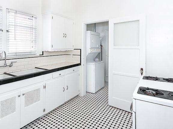 2 bed 1 bath upper floor unit in a four unit building. Lots of windows, closets. Large size kitchen. Washer/dryer in unit. High ceilings. Formal dn rm. One car garage. Separate entrance. Must see. 12months lease min. Water trash is paid by owner.