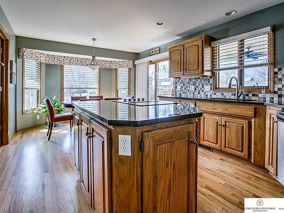 Casual living, a MUST SEE!! Custom, 1 owner, beautifully maintained 3077 sq. ft. ranch, features 3 bedrooms on the main floor and 3 car garage. Eat-in kitchen has been updated with SS appliances, granite counter tops, ceramic/glass tile, island and breakfast bar. Double access to AMAZING, covered/lighted deck, perfect for entertaining. Beautiful, new landscaping and mature shade trees. Great room with classic beautiful 'Omaha' brick fireplace and wood floors. Large master bedroom with tray ceiling, walk in closet, jetted tub, his/her vanities. Completely finished lower level with Italian ceramic tile. Large Rec Room, Family room, Exercise room, 4th bedroom (non-conforming), 3/4 bath, cedar closet and built in storage. Ample storage and custom built-in cabinetry, great location with easy access to interstate, parks and all schools. This home has sprinkler and security systems.