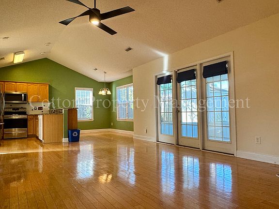 Engineered hardwood flooring throughout the living areas and downstairs bedrooms. Spacious living area is open to kitchen with plenty of natural lighting. Back door leads to screened in back patio ideal for entertaining. Vaulted ceilings in the dining area adjoins kitchen with breakfast nook. Kitchen is equipped with smooth top range, dishwasher and abundant counter space/cabinetry. Large master bedroom features vaulted ceilings, walk-in closet and dual vanity sinks and garden tub in bathroom. Downstairs has 2 additional bedrooms and full bath. The second level boasts a bonus room that could serve a variety of other uses as multi purpose space for exercise, office, etc. Plenty of space available in (2) car garage to keep your ride looking fresh and clean or to meet your storage needs! The backyard is fully fenced in or relax by the community pool! Washer and dryer hookup are available. Rainsoft water softener on site. *Pet Friendly - 2 pet limited with applicable fees and pet rent. Professionally Managed by Cotton Property Management representing the owner.