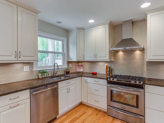 Winter lake views, just steps from Beach#5! Renovated kitchen (2014), opened to dining room! Many additional updates, including bathrooms, HVAC, water heater, gutters, interior/exterior painting. The home really sparkles! Picture windows with views to verdant yard! Abundant recessed lighting, telephone, ethernet and cable wiring in each room added in 2007; wood burning fireplace in living room with gas line roughed in. Also includes an extra roomy 2 car garage.