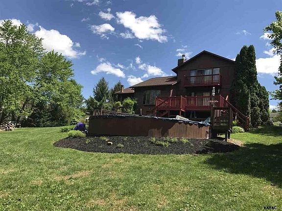 LOVELY CUSTOM HOME near Lake Codorus has an expansive first floor! Amazing for entertaining w/ tremendous dining room, 2 gas fireplaces, both a living room & family room w/ bar, open kitchen w/ new countertops & wrap around bar, & multi-tiered deck! Master suite w/ balcony! 3 BRs upstairs w/ potential for 2 more BRs on main floor! 1st fl laundry! Spacious driveway! Large tree lined yard near Lake Codorus & local boat launch! Fabulous location!