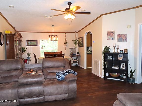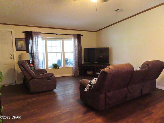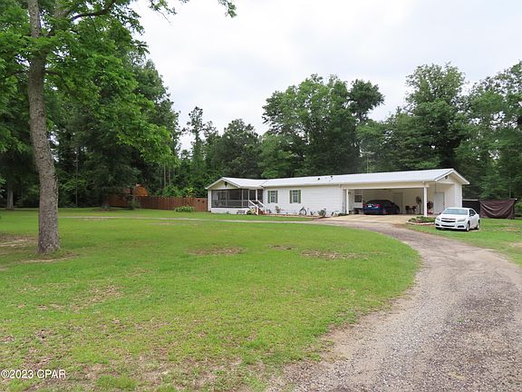 A little country living on 5 + acres not too far from the city. This 3BR/2BA Palm Harbor Double Wide mobile home includes a split floor plan that features many updates including a new HVAC installed in 2022, water proof laminated plank flooring, 40 gallon hot water heater, S/S refrigerator, and updated plumbing. This home has so many extras and you will enjoy the seasons from the spacious screened-in front porch or sunroom. The carport area includes storage, 2nd laundry area, and 1/2 bath. There is also an additional 10x16 storage shed. Call for your appointment today!