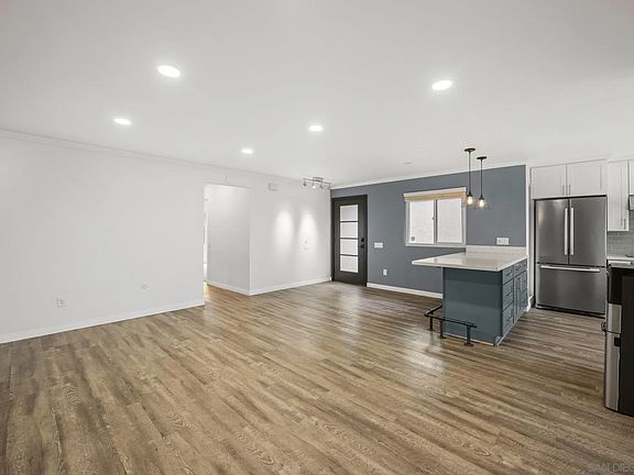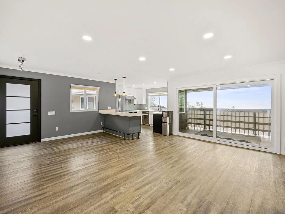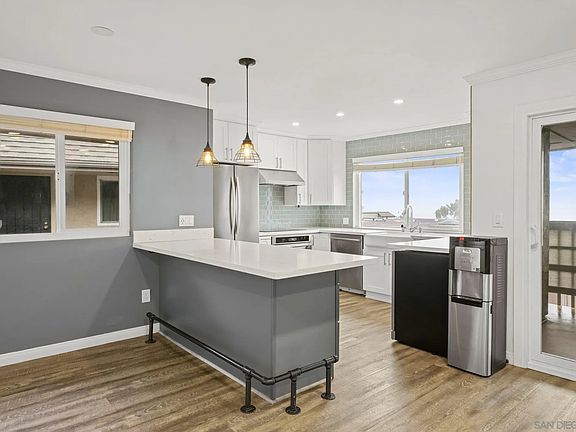 Completely remodeled home. Featuring large open area modern kitchen, dining and living room. Balcony and kitchen enjoy sunset views of SD Mission, Pt Loma and Sea World fireworks. Upgraded appointments include quartz countertops, premium kitchen appliances, marble stone in the master bath and much more. Windows & doors have been replaced and waterproof plank floors installed. The 1st floor permitted garage/storage expansion was converted and adds a room that can be 3rd bedroom, office, den or rec room plus a 1/2 bath. This is a quiet corner unit and less than a minute walk to all the clubhouse amenities. The pool is spacious and heated in the summer. Expansive greenbelt for relaxing or playing. Garage can accessed directly from the home. Both enclosed garage and carport are attached and are equipped with automatic garage door openers. Primary bedroom has access to the rear lawn area. Conveniently close to shopping and dining. Located 10 minutes to the beach and downtown, 5 minutes to major freeways and 15 minutes to the Convoy District with its many Pan-Asian restaurants and markets. Additional features: Built in wine chiller. Reverse Osmosis water filter system installed in kitchen. Refrigerator and separate water cooler included. Built in weight rack in the garage. Spacious laundry area with washer and dryer included. Washlet bidet toilet in the primary bathroom. Electronic Key at entrance. Induction cooktop. ***Added bonus: Solar panels are installed and fully paid off.*** Move in Ready.