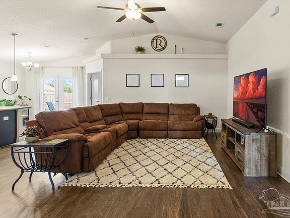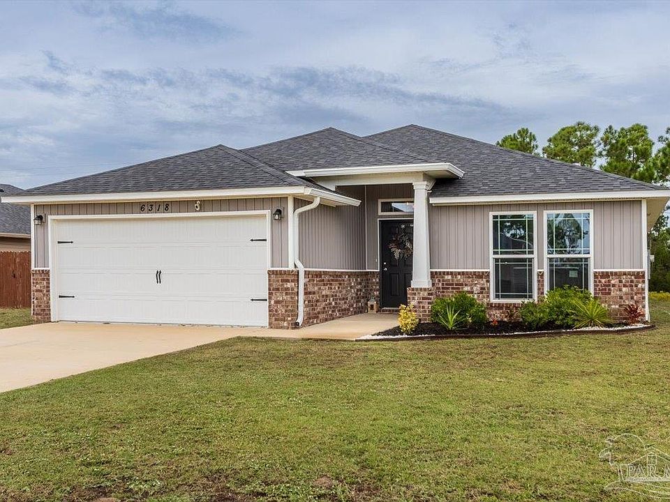 3-Bedroom, 2-Bath Home in Sought-After Community with sidewalks, underground utilities, and access to public water and sewer. Enjoy relaxing mornings or evenings on the covered porch. The open-concept floor plan boasts luxury vinyl plank flooring throughout the main living areas, a raised ceiling with recessed lighting, and a bright, spacious layout. The kitchen is designed for both functionality and style, featuring an island with granite countertops, stainless steel appliances, and ample cabinetry. The primary suite includes a raised tray ceiling and a luxurious en-suite bath with a fully tiled walk-in shower and double granite vanity. Two additional guest bedrooms share a full bath, offering comfort and convenience for family or visitors. Ideally located with backyard adjoining wooded conservation area. Just minutes from schools, shopping, and the sugar-white sands of Navarre Beach. Whether you're drawn to fishing from the Gulf Coast’s longest pier, snorkeling the reefs, deep-sea fishing, collecting seashells, or simply unwinding by the shore with a good book, this location offers it all. Navarre Beach, only four miles long, is one of just ten beaches in the nation designated as a protected National Seashore. Known as "Florida’s Best Kept Secret and Most Relaxing Place," it's perfectly positioned between Destin and Pensacola Beach.