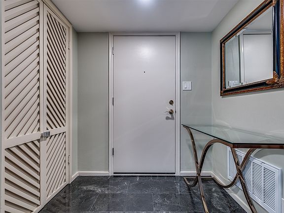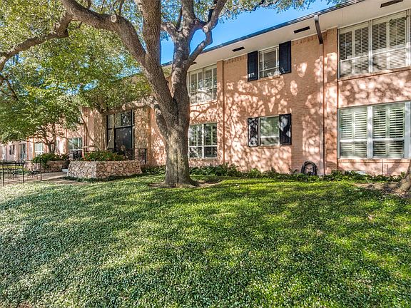 Sophisticated design and impeccable finishes define this elegant ground-floor condo in Preston Hollow’s “Behind The Pink Wall” neighborhood. Enjoy the spacious, easy-flowing floor plan, complemented by large picture windows that offer beautiful green views. Wood floors and custom lighting are featured throughout the home, along with meticulous details such as replaced or refinished doors with custom hardware and hinges. A floor-to-ceiling wall of built-ins decorates the roomy living area. The sleek, wide galley kitchen features custom cabinetry with under-cabinet lighting, glass tile backsplash, granite countertops, premium stainless-steel appliances, and a walk-in pantry with an additional utility closet. The spacious primary suite includes three closets, a separate laundry closet, and a shower bath with luxurious tile, marble, and fixture selections. A second bedroom and full hallway bath offer ideal flexibility for guests or a home office. Plantation shutters are featured throughout, and every window in the unit has been replaced for better insulation and comfort. Park Carillon is a quiet, well-maintained community with classic mid-century architecture, lush landscaping with mature live oaks, and a central pool courtyard that’s scheduled for a refresh in the next few months. Located in one of Dallas’s most desirable areas, this Preston Hollow gem offers easy access to Preston Center, NorthPark, and Preston Royal shopping and dining. Monthly HOA dues cover all utilities for worry-free living.
