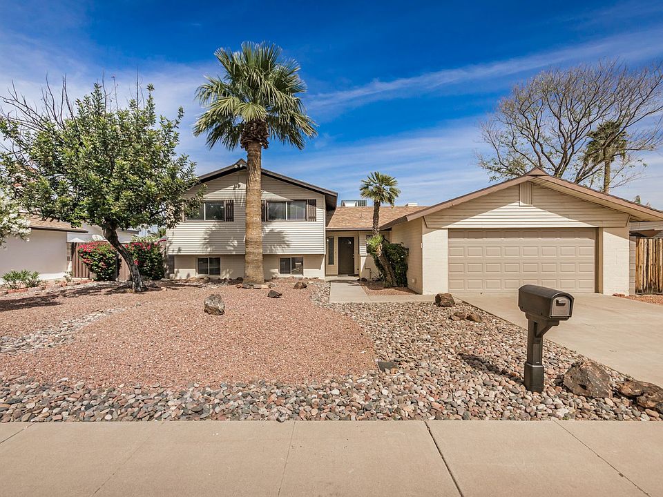 Updated 4 bedroom 2.5 bathroom home located in desirable Scottsdale location! Enter into the main floor of this lovely tri-level home and be greeted with an open floorplan. Completely updated kitchen, large family room, formal dining room, and painted brick fireplace. Upstairs you'll find 3 bedrooms and a full bath. Downstairs includes the 4th bedroom, a bathroom and a large BONUS room! Massive backyard is an entertainers dream - built in BBQ and grill, sparkling blue pool and tons of room for fun!
