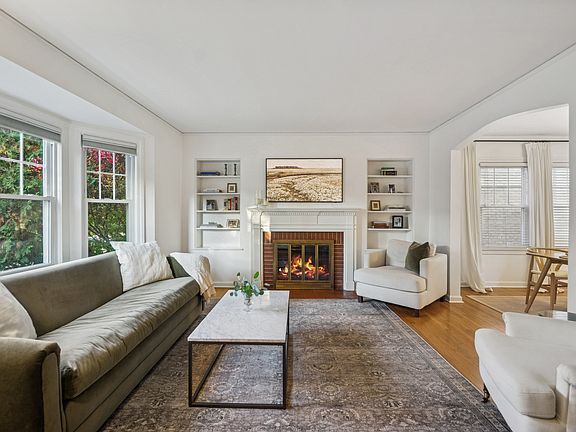 Classic brick Georgian, updated with a fresh and contemporary sophistication, located in the heart of Edgebrook. This welcoming home has a light-filled LR with a large bay window, centered by a beautiful wood-burning brick fireplace and mantle and framed by built-in bookshelves on either side. Pass through an arched opening into the formal DR with its oversized windows and easy access to the kitchen. The updated kitchen has white cabinets topped with quartz countertops and SS appliances. There is a comfy family room with a unique exposed wood beam ceiling, built-in bookcase and a wall of picture windows with views of the lovely backyard. A convenient half bath completes the first floor. Up the staircase to a large primary bedroom with double closets. There are 2 additional good sized bedrooms and a full bath. The finished basement is the perfect space for a rec room, work-out room, man cave or playroom. There is a separate laundry room with an enormous amount of storage space. The large backyard offers an additional 3-tiered space for relaxing or entertaining with its lush grassy area, patio and deck warmly illuminated with strands of outdoor white lights, plus a 2-car garage. Recent updates 2021: Wood-burning fireplace has a new liner, top flue tile, and damper ,updated kitchen with quartz countertops, backsplash, farmhouse sink and SS appliances, full bath update with new countertop, sink, faucet and matching fixtures, entire interior freshly painted, custom closet systems installed in 2 bedrooms, various overhead lighting upgrades entire backyard landscaped. Fabulous location with easy access to everything Edgebrook with its restaurants and shops, the Metra, 90/94, downtown and O'Hare. This gem has it all and ready for you to move right in!