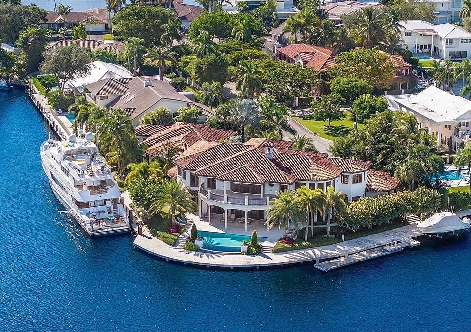 Mega yacht dockWaterfront estateFloor-to-ceiling windowsPrime wfMedia roomGym and saunaSoaring ceilings