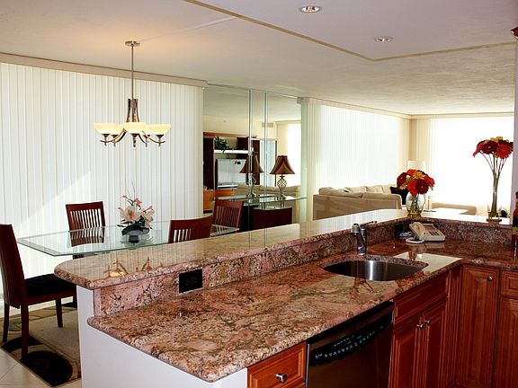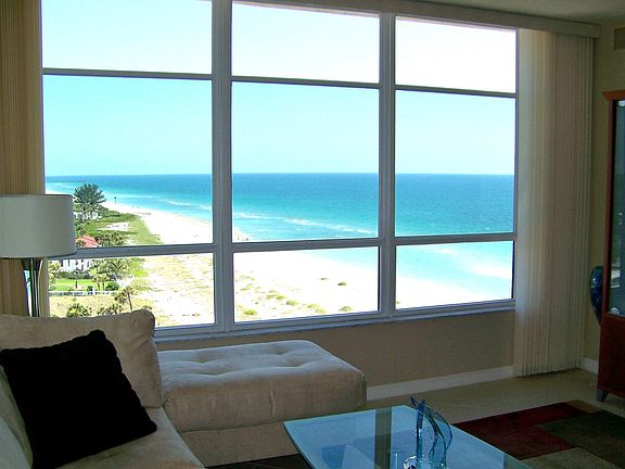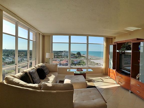 This totally remodeled unit has fantatic and endless views of BOTH land and sea from the top floor of the tallest complex on Venice Beach. This is the premier unit, unlike any others, in the extremely well maintained Valencia on The Gulf condominium complex. As a corner apartment with two large screened balconies, it is ideally positioned to provide unobstructed views of Beach, Gulf, and Venice Island. Centrally located on Venice Island, it is an easy walk to downtown restaurants and shopping. The unit is fully furnished with King Bed in the Master Bedroom, Large Walk-In Master Closet, Dual Master Bath Vanity Sinks, Guest Bedroom, Washer/Dryer, Stainless Kitchen Appliances, Imported Granite Countertops, Porcelain Tile Floors, 46" Flat Screen TV, and WiFi. Valencia on the Gulf offers numerous amenities including on-site management, the largest pool on Venice Beach, shuffleboard courts, exercise room, library, game room, numerous resident activities and private covered parking, along with the safety and security of fully sprinklered and monitored buildings. Ample visitor parking is also provided. Smoking is not allowed in either the unit or on the balconies. Three (3) Month Minimum Lease. All fees and services included.