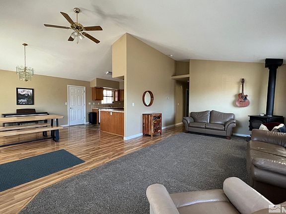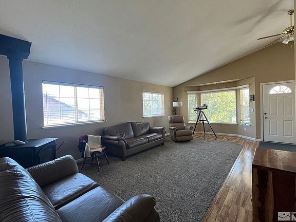 Great family home in a quiet neighborhood. Mature vegetation in the front allows for a private entrance. This home features a large kitchen, perfect for big family meals or entertaining friends. The spacious living room features a pellet stove and vaulted ceiling. Large master bedroom and bathroom with dual sinks and a big closet. Backyard is a blank slate that backs up to Winnemucca Mountain. Let's go check it out!