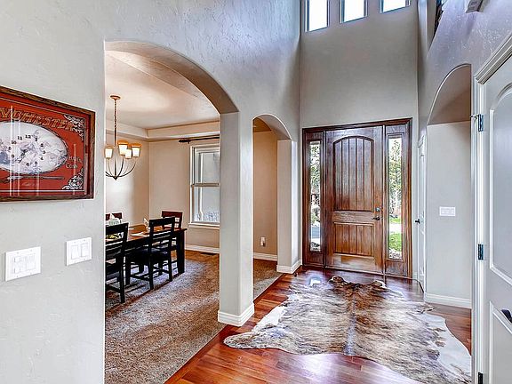 Look at this great curb appeal! This semi-custom 2-Story home in Hidden Forest, sits on a gorgeous half acre treed lot. As you enter this home you feel the openness of the vaulted ceilings. The main floor features the beautiful formal dining and living rooms plus a main floor study. The great room has vaulted 2 story ceilings, large windows and is open to the spacious gourmet kitchen with walk-in pantry, gas cook top, convection oven, slab granite counter tops, hardwood floors and SS appls for the Chef in the home. Upstairs the master bedroom has 5 piece bath with double sided fireplace and large soaking tub. There are also 3 large secondary bedrooms. Many more features not listed to see in this home. The bsmt w/10-foot tall ceilings is unfinished and awaits your creativity. Backyard boasts a serene water feature and built-in fire pit, for weekend BBQs. The over-sized 3 car garage has storage galore. The Professional landscaping make this home the perfect setting in Hidden Forest.