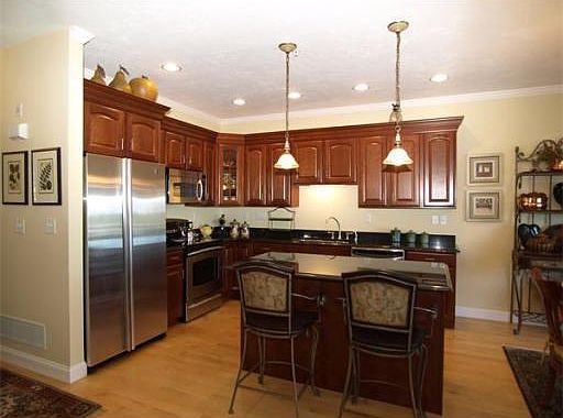 You must see this mint condition, gorgeous contemporary townhome at the Woodlands! Offers 2 bedrooms + spacious loft + home office/flex room + full walkout basement. The owner spared no expense in selecting elegant finishes for this spacious home: Kit w/ granite, cherry cabinets, SS appliances. Wood flooring + tile throughout home. Stunning master bath w/ whirlpool tub, enclosed tile shower, cherry cabinets w/ corian. Dramatic cathedral ceiling in LR w/ skylights & crown molding. Convenient 1st floor laundry. Upgraded plumbing fixtures, cabinetry, trim, flooring, appliances, countertops; the list goes on! You will fall in love with the magnificent views from this home! Ideal location for commuting - easy access to 495, 90, 290, 190, plus great home office space in the loft or the office/flex room. Condo fee covers cable TV, internet, landscaping, water/sewer, trash pickup, snow removal, professional onsite management, master insurance, and more. Be prepared to be impressed!