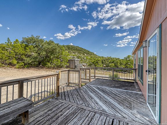 Wake up to the beauty of the Hill Country. Enjoy your morning coffee on the expansive front porch or unwind in the tranquility of the covered back patio as deer and native wildlife roam beneath the canopy of mature live oaks. This end of the road property offers a rare blend of privacy and natural charm, with thoughtfully preserved cedar and shade trees scattered throughout the landscape. Step inside this inviting 2-bedroom, 2-bathroom home boasting 1,736 square feet of open living space. The heart of the home is an open-concept kitchen, perfect for both everyday meals and entertaining guests. A spacious living area and dual dining spaces provide comfort and flexibility for any lifestyle. The master suite, directly off the living area, features a generous walk-in closet and a large en suite bathroom. The secondary bedroom is equally roomy, offering ample space for family, guests, or a home office. Outdoors, an enclosed shed offers versatile storage or workshop potential-ideal for tools, hobbies, or outdoor gear. And it's all minutes to Medina Lake! Whether you're looking for peace, space, or a connection to nature, this property delivers it all. Come experience the serenity and freedom of Hill Country living-this isn't just a home, it's a lifestyle.