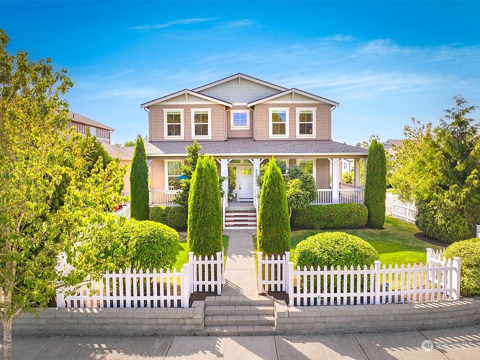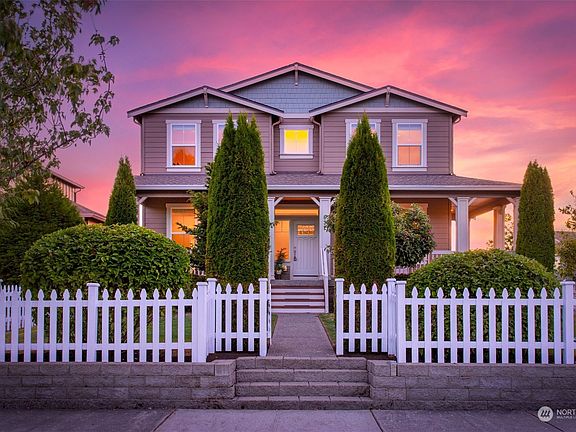 This charming home awaits in the heart of Snohomish & the sought-after Riverview Highlands community! The home is moments from local schools, Hwy 9, First Street shopping, & more. Let the white picket fence and the quaint wrap-around front porch welcome you inside, where you'll find thoughtful updates, including fresh interior paint & A/C. Relax in the family room near the fireplace, whip up dinner in the stylish kitchen, host meals in the dining area, or entertain on the spacious deck. The primary bedroom upstairs features a spacious private deck & five-piece ensuite. The home is rounded out with 3 additional bedrooms upstairs, an oversized two-car garage with floor-to-ceiling custom storage & versatile bonus space on the lower level!