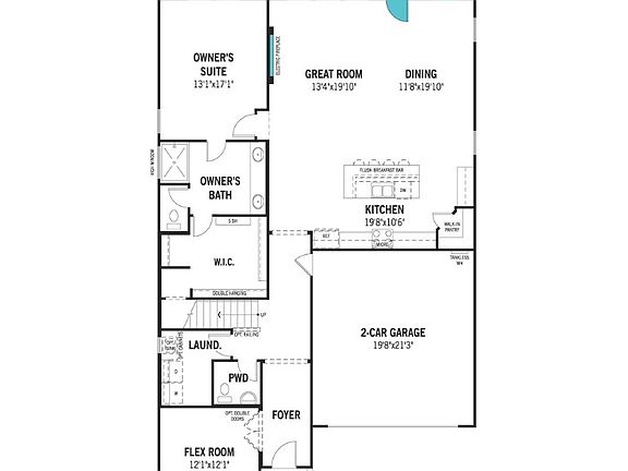 Generous walk-in closetSpacious bathroomVersatile flex roomCentral game roomLarge islandOpen-concept layout