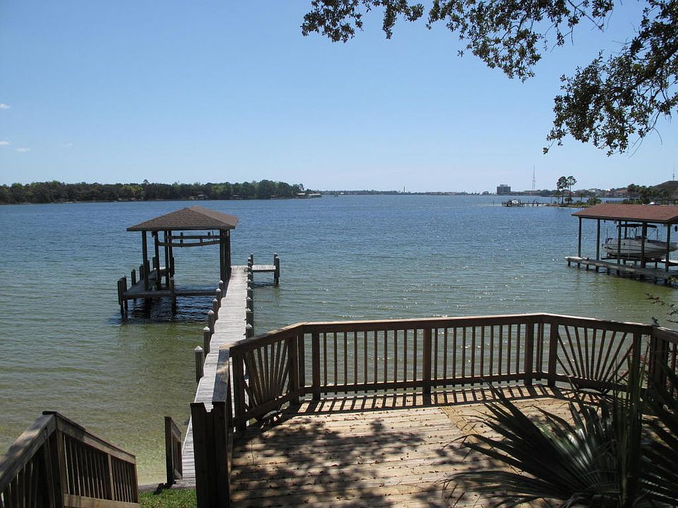 PRICED BELOW APPRAISED VALUE...Peaceful waterfront in Ft Walton Bch, good elevation. Five minutes to FWB Golf Club & hospital, 20 minutes to beaches. Breathtaking views of Garniers Bayou. Over 500 SF of covered/extended patios, plus detached dining deck with gas hookup, waterfront sundeck, and dock! This open-plan custom home has exquisite architectural details including 10'-14' ceilings, columns, arches and sun tunnel skylights. Sale price includes two parcels w/combined total of 0.98 acres: Home is on Lot 5 with 76' bayou-frontage. Lot 4 gives added privacy. See supplement for detail.