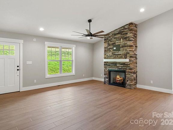Tucked away in the beautiful mountains of Western North Carolina is a lovely new community called Sky View Ridge. This picturesque subdivision is located in Madison County just 6 miles from Weaverville making it convenient to shopping, restaurants, white water rafting, hiking, skiing, & more. Lovely country setting. Quality, stylish, tasteful features are standard for these builders. Open floor plan w/vaulted ceilings in the living area & primary suite. Floor to ceiling rock gas fireplace, Kitchen w/granite countertops, white Shaker cabinets, & a sleek inviting island. Main floor laundry room, Split BR plan. The Primary BR hosts an en-suite bath w/granite double vanity & a walk-in shower. A covered rocking chair front porch the entire length of the house w/6 rock columns & a spacious covered back porch. Exterior white vinyl w/stylish black windows (white on the inside) & black exterior shutters. 3 panel interior doors w/craftsman style trim. Construction is complete.