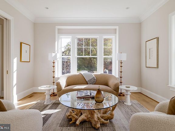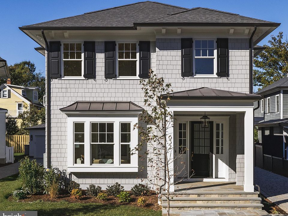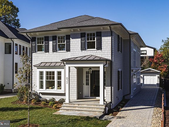 In the coveted heart of Ashton Heights, where lush tree-lined streets meet urban sophistication, 632 North Kenmore Street stands as a statement of modern artistry and refinement. Conceived by the acclaimed Ventura Group, designed by GTM Architects, and finished with interiors by Kelly Knebel Designs, the home has been thoughtfully crafted from the ground up to embody timeless elegance with a contemporary edge. The exterior makes a charming first impression, with gray Hardie shingles, crisp white trim, and dark shutters evoking the quiet luxury of a Nantucket summer cottage. A deep paver driveway along the side leads discreetly to a private detached garage at the rear of the property. The entry, tucked beneath a welcoming portico, opens into a dedicated reception area, with a light-filled den situated just off to one side. Inside, the ambiance is bright and ethereal. Ten-foot ceilings and eight-foot doors lend a sense of scale, while wide-plank white oak flooring and substantial Emtek hardware establish a foundation of quality. Visual Comfort and Hudson Valley light fixtures pair with WAC recessed lighting, adding layers of warmth and visual interest to the clean architectural lines. At the center of the main level, the stair hall serves as a striking architectural core, where a sculptural white oak staircase is framed by soaring windows that flood the space with natural light. Opposite the staircase, the formal dining room is framed by a large wall of glass and perfectly scaled for hosting. A butler’s pantry with wine fridge connects seamlessly to the kitchen. The informal living spaces span more than 30 feet across in a true open-concept layout. The family room features double sliding glass doors that open onto a screened-in porch, creating a seamless indoor-outdoor connection for year-round enjoyment. The adjacent chef’s kitchen is both stunning and functional, with custom Alpine cabinetry, a white oak island, quartz countertops, and a full suite of top-tier Sub-Zero, Wolf, and Cove appliances. A sunny breakfast area, surrounded by three walls of windows, completes the space. Upstairs, the primary suite offers a tranquil retreat overlooking the rear lawn. A generous U-shaped walk-in closet is outfitted with custom built-ins, while the spa-inspired bath features radiant heated floors, a curbless shower, soaking tub, double vanity, and private water closet. Three additional bedrooms are thoughtfully laid out, one with an ensuite bath and two that share a large hall bath with double vanity. A full-size Electrolux washer and dryer are conveniently located in the upper-level laundry room. The lower level echoes the main level in scale and attention to detail. A large recreation room is anchored by a wet bar with wine fridge, while a spacious fitness room and a private fifth bedroom suite offer additional flexibility. The home is fully pre-wired for modern living, with ceiling-mounted surround sound, wireless signal boosters on every level, and a comprehensive video surveillance system, all backed by a 400-amp electrical panel to accommodate future smart home upgrades. Out back, the level lawn is lush, fully irrigated, and perfectly proportioned, a serene and functional backdrop for outdoor entertaining or everyday play. Located just steps from the Orange Line Metro and minutes from Washington, DC, 632 North Kenmore Street is a rare blend of architectural distinction, thoughtful functionality, and timeless design in one of Arlington’s most sought-after neighborhoods.