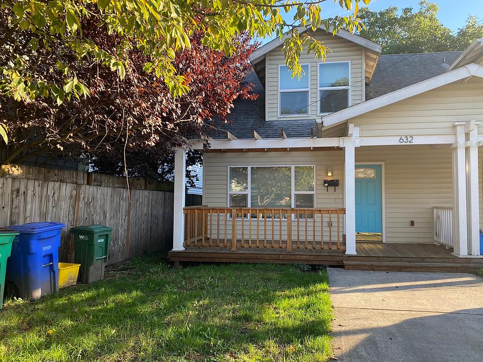 Laminate wood & tile floors throughout, stainless appliances, washer/drier hookup, vaulted ceilings, dishwasher, air conditioner, large closets and extra storage, front porch, small low-maintenance yard with raised beds, nice neighbors, local owner/landlord, and driveway parking for 2 cars. Pets allowed with additional one-time fee and prior landlord reference.