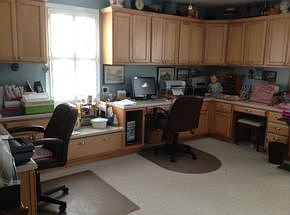 Beautiful open floor plan. Three bedrooms with walk-in closets, two masters, 4th bedroom/office with built-ins cabinetry. Two computer work stations. Sewing area in closet. Central Vac. Skylights in great room and kitchen. Custom lighting in great room, dining room, kitchen and library. Screened siggint room with fan on deck. Double dishwasher, and compactor. Roll-out shelves in kitchen, and pantry. High efficiency heat pump. Three garages, work shop area, shelving for storage, electric dog fence in front and back yards. Garden spot. Plantation shutters. Extra wide halls and handicapp access. All this in a great neighborhood.