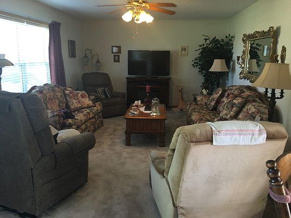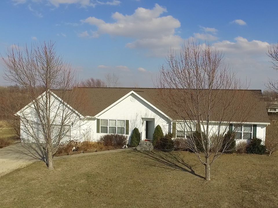 Well-maintained, maintenance free ranch home on 1.5 acres located on a private cul-de-sac. Just outside city limits and close to the Country Club golf course! Nice open floor plan with a beautiful off-the-back deck, walkout basement, two car attached garage (24x28) plus detached (24x24) metal garage/shop with door high enough for camper storage. Two bedrooms, two baths plus a den that could be converted to a third bedroom. Open living, dining, kitchen area, pantry and utility room all on the main floor. Interior includes carpet, ceramic tile floor coverings, newly installed wood laminate and painted Sheetrock walls. Beautiful hardwood cabinets in the kitchen and dining area. The 1,651 sq. ft. walkout basement could easily be finished to meet the buyer's needs. Lot has a view of a pond from the large, attached deck and is beautifully landscaped. City water, Atmos energy gas, Westar Energy electric and country taxes!