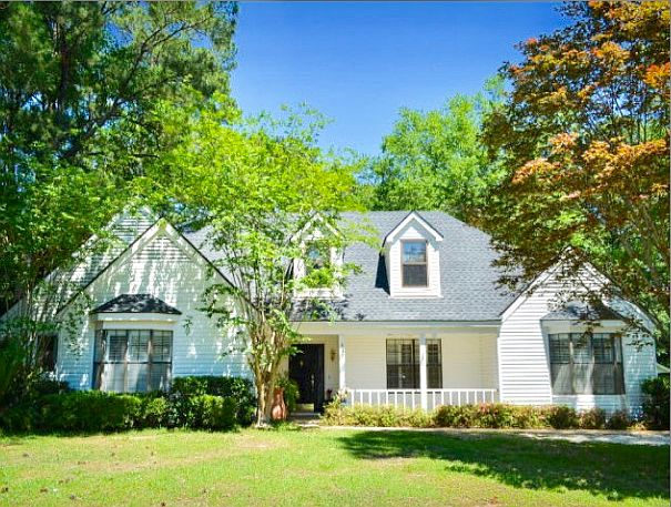 Sought after Spanish Fort Estates and Spanish Fort Schools! This home features soaring vaulted ceilings in the living room and kitchen. Tile and wood burning fireplace in the living room. This roomy kitchen has a bar, island with a range top stove and a bay window. Dining room has a bay window and wood floors. Office area with French doors. Master bedroom has a bay window and the master bath has a double vanity and walk in shower. One level home with the 5th bedroom/ bonus room with built in shelves and desk upstairs. Home has a screen covered gunite saltwater POOL, back deck and screened in carport for a fun gathering place. Come take a look!