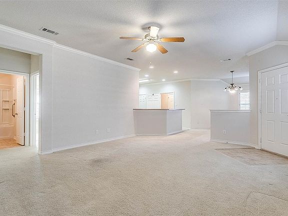 Ideal Location! Near Eagle Mountain Lake! Not far from Eagle Mountain Marina, Fort Worth Nature Center & Refuge & Twin Points Park which features a sandy beach for swimming & Boat Launch! One Story 3 Bedroom Brick Home with 2 baths & 2 car garage with Open Floorplan, features fenced backyard that backs to Wooded Land. Neutral Colors throughout, Light & Bright, crown molding, stainless steel appliances in kitchen plus Island, tile backsplash in kitchen overlooks dining & living room areas. Only 35 minutes approx from Downtown Ft. Worth!