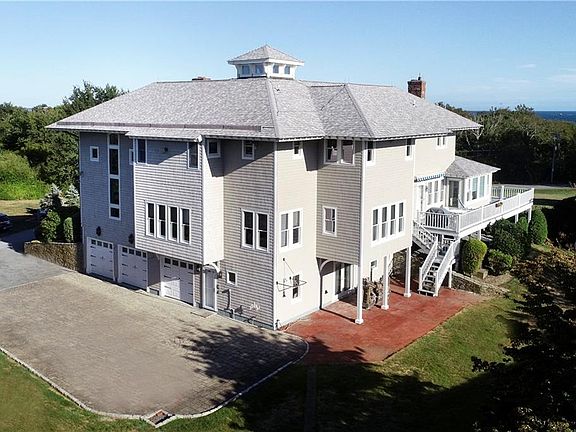 "Sea Mist" - just a stone's throw from historic Purgatory Chasm and Middletown's popular 2nd Beach. Set high on a hill of desirable Easton's Point, this spectacular residence was carefully built by the present owner with attention to every detail. Sunny and open gracious rooms and outside porches offer perfect spaces for both casual and formal entertaining. The formal (24'X20') living room with 20+ foot ceilings and gas fireplace is ideal for holidays and family gatherings. A library/office with built ins leads to a comfortable corner room perfect for reading and relaxing. Formal dining room with built in buffet accommodates a large table. Wonderful bright and airy gourmet kitchen with top of the line appliances opens to a family room with wood burning fireplace. The southern end of the house is a sun-filled year round enclosed sunroom with radiant heat. Covered outdoor space on the entry level is spacious and easily accessible from most rooms. Ensuite Master bedroom along with 2 guest rooms and full bath are situated on the upper level. A fun interior 'crow's nest' is a great viewing area to capture all of Middletown's beauty such as St. George's chapel, Sachuest Beach, Sachuest Point, Tiverton, Little Compton and beyond and the wonders of the Atlantic Ocean. The lower walk out level is 3/4 finished and houses another bedroom, bath and laundry room along with a meticulously clean 3 car garage, storage and mechanical rooms. All on just over 1 acre of land.