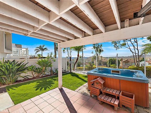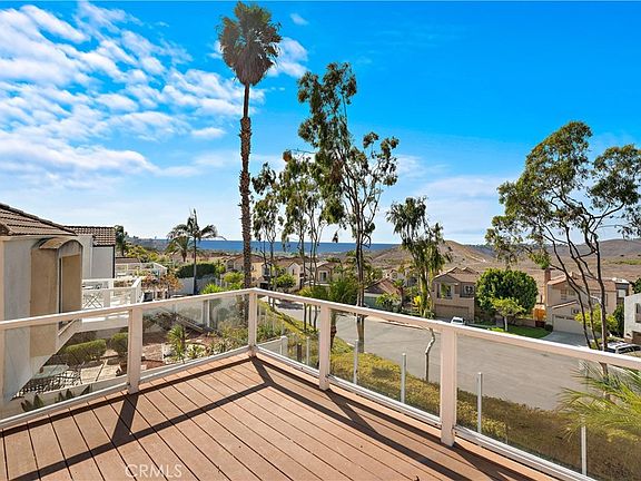Detached home nestled in the Villago Community of Rancho San Clemente with beautiful ocean and hills views! No homes behind so the views are mesmerizing and easily enjoyed! No common walls, just like a single-family residence. Quaint front courtyard and a large, enclosed backyard with turf, a covered patio and a partial glass fence to enjoy the peaceful views. Two story ceilings, dramatic windows and a cozy fireplace greet you upon entry. Granite counters and stainless steel appliances in the kitchen. All three bedrooms are on the upper level. Highlights of the master bedroom include a huge, cedar lined walk-in closet with multiple built-ins and a viewing balcony with ocean and hills views. One of the secondary upper-level bedrooms also has a quaint balcony. 2 car garage and additional driveway parking. The property also has AC, a tankless water heater and new interior paint. Rancho San Clemente offers wonderful hiking trails, excellent schools, shopping, restaurants, the newer Lifetime gym and tennis facility and is just minutes to the beautiful beaches of San Clemente!