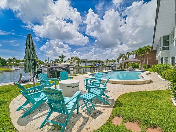 Direct Gulf access, no bridges via Bimini Basin. A quick boat ride to the river from this newly renovated 2 bedroom, 2 bath condo. The interior was recently finished with everything NEW - Luxury vinyl floors throughout, kitchen and bathrooms cabinetry with beautiful granite countertops and backsplash, ceiling fans, lights, window coverings, and more. Hurricane protected with impact windows and doors installed in 2020. The building's roof is new as of 2023. New carports were just installed. Boat space up to 26' in length. There are only 16 units in this building with heated pool and gazebo and grills for all to enjoy. View of interstecting canal and of bimini basin from pool area. Close proximity to Four Freedoms Park, downtown Cape Coral's restaurants and night life, and a short car or bike ride to the Cape Coral beach.