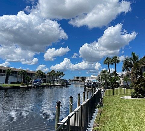 Welcome to your dream waterfront retreat in the highly sought-after downtown Southwest Cape Coral! This well maintained 2-bedroom, 2-bathroom condo offers southern exposure with direct Gulf access and breathtaking views of intersecting canals at Bimini Basin. Close to all downtown has to offer and walking distance to Four Freedoms Park. Step inside to over 1350 square feet of upgraded living space. This fully furnished condo features open concept living with granite countertops, bamboo flooring, updated lighting and freshly painted throughout. Shared laundry units and all water utilities included. Heated pool and dock available, with covered parking. Come enjoy this fully furnished, waterfront condo in a desirable 55+ Community with minimum 1 year lease. Renter shall pay for electrical utility. $1750 per month.