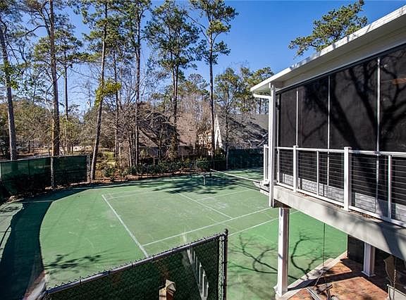 Primary suiteRare private tennis courtSeparate showerScreened-in porchJetted tubDouble vanitiesSpa-like bath