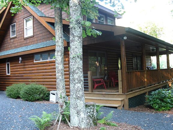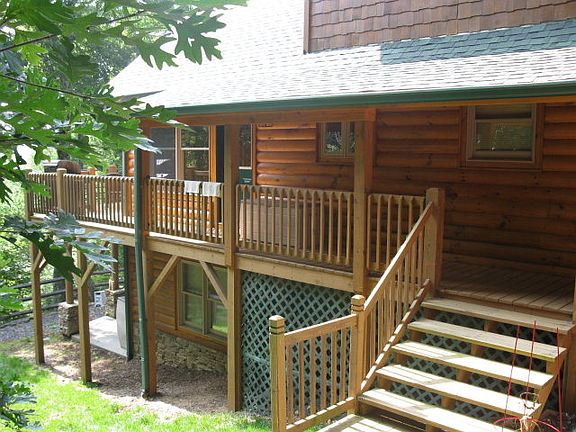 Look across a mountain view from the deck to the Blue Ridge Pkwy. Southern Ashe county convenience to Boone and West Jefferson. Hike from your back door on the roughly 2 miles of path throughout 52 acre community and along stream. Rustic log-sided, shakes, Board&Batten home with large covered porch and large open deck. Interior features wide-plank wood floors on main, T&G, vaulted, exposed beams ceiling, stack stone fireplace (gas), gourmet kitchen with stainless appliances, quartz island, African mahogany countertops, master (with tile walk-in shower) and laundry on main. Upper level large bedroom, bath and loft. Lower, finished, walk-out level with 2nd FIREPLACE in family room, W/D hook-up, full bath, wet bar (could be mother-in-law suite or apt.) Oversized garage (1240 sq ft) with finished, plumbed main-with space for workshop or studio, includes unfinished 2nd floor which could be converted to artist studio or apt. Additional acreage available adjacent to home. GREAT year-round access!