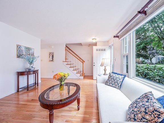 Welcome to Bluestone Condominiums! Well maintained condo with open floor plan featuring Kitchen with center island breakfast bar, Stainless appliances including microwave, KitchenAid refrigerator and dishwasher and a DCS GAS stove. Kitchen is open to dining room and a large living room - all with hardwood floors! 2nd floor has essentially 2 Main bedroom suites - 2 large bedrooms with 2 private baths! The basement is fully finished with large family room, an office/guestroom, a laundry room that includes a washer and gas dryer, plus a storage room with built-in storage and a 2nd refrigerator. Other features include: Dining room has slider to composite deck overlooking private common area yard, 2 deeded parking spaces, GAS heat, central AC, and low monthly utilities. These well maintained units are nicely landscaped with new paver walkways being installed throughout the complex. Located conveniently near shopping, trains and major highways!