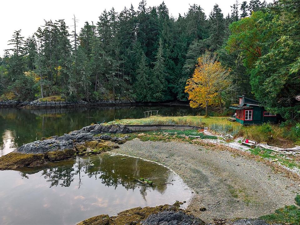 OCEANFRONT!! Discover a rare opportunity with this 3.1-acre waterfront lot featuring roughly 600 feet of shoreline. With two road accesses, the property offers both privacy and convenience, creating the perfect setting for your dream retreat. Enjoy private beaches, dramatic rock outcrops, and sweeping water views in a serene natural environment. Spacious yet secluded, the land provides the ideal balance of tranquility and potential. CRD water is available, adding ease and value to future development. A charming off-grid cabin is also included, allowing you to enjoy the property right away while exploring your future options. This is a one-of-a-kind chance to own extraordinary waterfront land. Do Not Visit Property without an appointment.