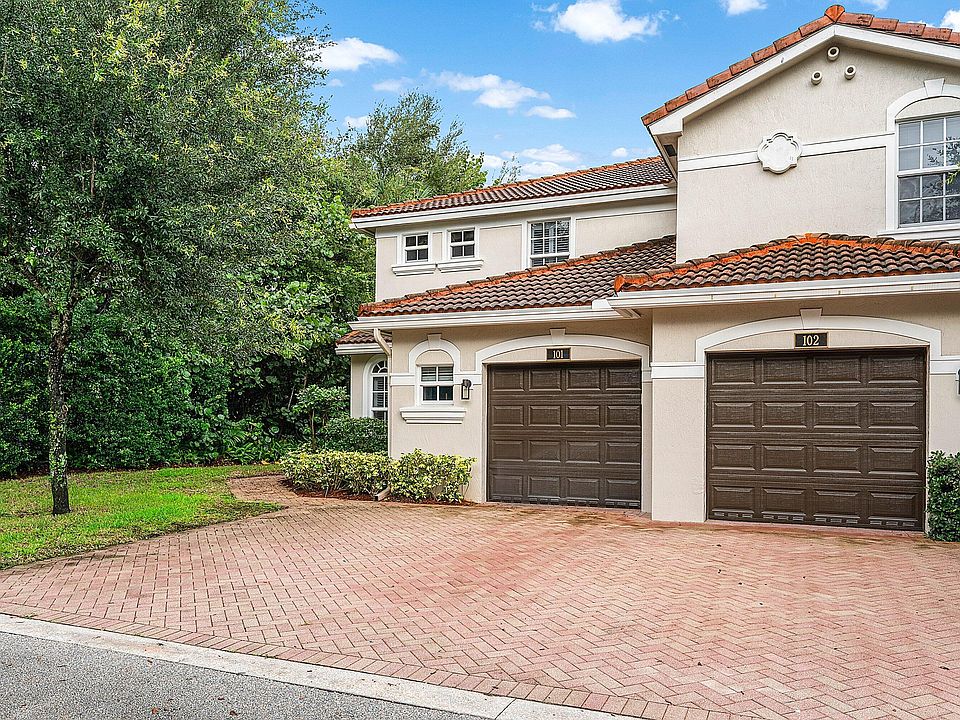 Beautifully updated 3-bedroom, 2.5-bath end unit offering over 1,800 square feet of living space in a desirable gated community. The property appraiser reflects the home as a 4-bedroom layout, offering flexibility to easily convert the existing floor plan if desired. The spacious primary suite features a comfortable sitting area, walk-in closet, and a completely remodeled bathroom. Enjoy an open-concept layout with abundant natural light, a 1-car garage, and a large private patio backing to lush green space, perfect for relaxing or entertaining. Ideally located directly across from the clubhouse with a resort-style pool and fully equipped fitness center. Walk to Publix, Walgreens, and American Heritage Private School. Zoned for A-rated schools and minutes from shopping, dining, and major highways this home combines comfort, convenience, and an unbeatable location.