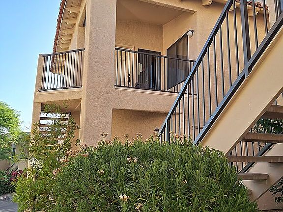 La Paloma Condominium (built as a condo), 2 bedroom/2 baths with 1 car attached garage. Man-gated Entrance. Gas and Electric. Dining Area. Attached counter-height kitchen bar. Walk-in closet in primary bedroom. Large balcony with room for a grill and eating area. Beautiful views from every room. Quiet complex. Inside the renowned La Paloma Gated Community. Community pool and spa. Clubhouse with a full kitchen for parties. Walking path throughout the entire La Paloma property. Golf course on the boundary of condominiums.