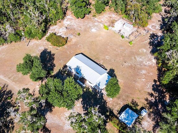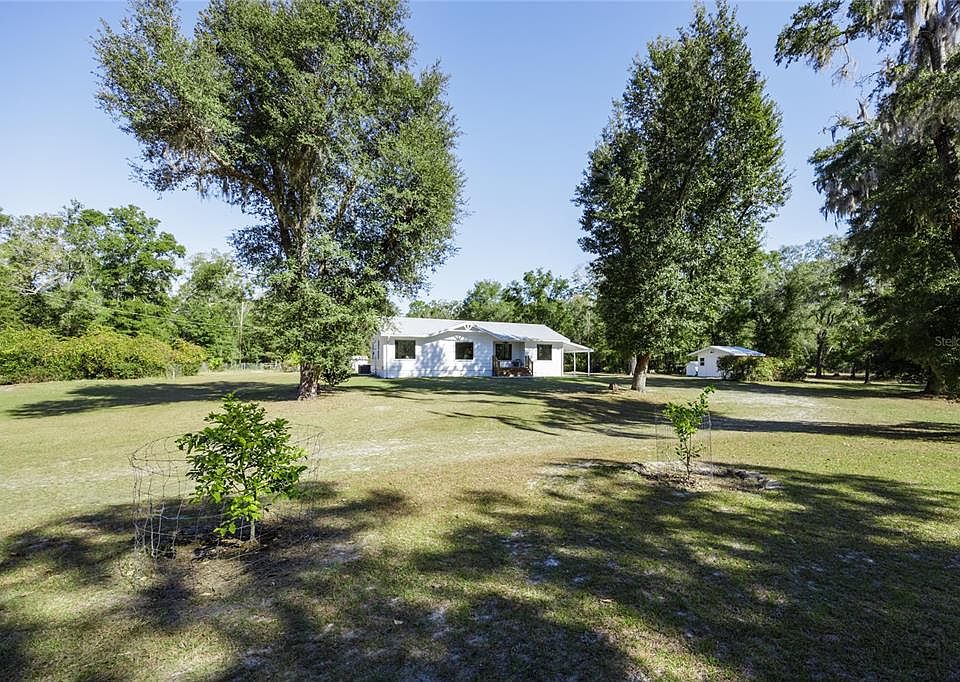 Priced to sell! Renovated single family site-built house on 10 HIGH AND DRY ACRES. Perfect mix of cleared land and trees creating ample amounts of privacy and usage. Parcel contains two 5 acre lots that could be divided to sell. In 2020, a new permitted metal roof was installed with a bubble wrap radiant barrier for optimum energy efficiency. 2020 HVAC and all windows were replaced with new custom energy efficient windows and luxury vinyl plank flooring installed. In 2021 and 2022 new appliances, HW heater, kitchen cabinets (wood no particle board), quartz counters, bathroom fixtures, decks and slab shed were put in. The kitchen has floor to ceiling pantry cabinets for extra storage, as well as a closet style pantry with a deep freezer that comes with. Recently painted. Split family bedroom layout. New baseboards and doors. Whole house has gutters. Fenced with several pens plus shed style chicken pen making it great for livestock, hobby farm, or possible equestrian property. Semi underground greenhouse with garden beds and hose spigots. Many different kinds of FRUIT TREES and bushes bearing fruit and organically maintained. Park like setting, home set back from the road with a long driveway, mini grove of cedars, lots of tree work done and walking the whole property is easy with fence line in place. FIBER INTERNET in place and very inexpensive, 10 minutes from Publix, 30 mins from NF Hospital, easy commute to Gainesville with low Gilchrist County property taxes and utilities.