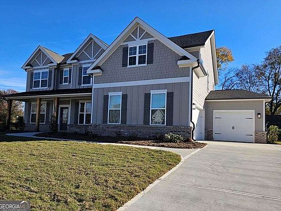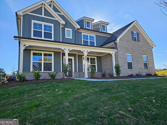 Welcome to Conner Farm, a beautiful new home community in Dawsonville/North Forsyth, built by Century Communities. This Bismark floorplan offers 5 BR, 4 Ba, added Bonus Room and 3300 sq ft thoughtfully designed living space on a spacious half-acre lot. The open-concept lay-out flows seamlessly into the gourmet kitchen featuring quartz countertops, 42" soft close cabinetry, stainless steel appliances, double wall ovens, gas cook-top, walk-in pantry and a large island- perfect for entertaining. The main level includes a guest suite with a full bathroom, ideal for visitors or multi-generation living. Upstairs, the luxurious primary suite boasts a spa-like bath and a generous walk-in closet. Three additional bedrooms, two full bathrooms and a large bonus room with wall of windows, complete the second floor. A 3-car garage provides ample storage, while the half acre homesite offers plenty of outdoor space. Conner Farm community, this home is just minutes from shopping, dining and outdoor recreation. Don't miss this opportunity- schedule your private tour today! Estimated completion is September 2025.