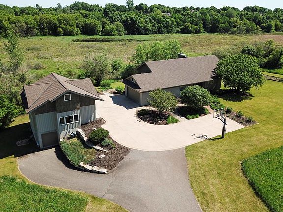 Peace and serenity on the Prairie! This custom Frank Lloyd Wright inspired contemporary home showcases scenic wildlife views on all sides! Kitchen, Dining and Living Room are connected as you will be too with your family and friends! Enjoy cooking in this Chef's Kitchen. Main level Master has private entrance to deck for enjoying that morning coffee. Private master suite has two walk in closets, luxury bath with separate vanities & deep soaking tub. Up a fun staircase is a bonus room, 4th Br or home office. Escape to the lower level "Admit One" Theater Room! Relax in the hot tub outside or roast marshmallows at the bonfire pit.Two separate garages for toys; one with 2 extra parking spaces below and a living space above.This extraordinary property is breathtaking with prairie restoration and nature areas. Blocks from Lake Sarah public boat access and Baker Park. Buyers and agents to verify all measurements and details. Measurements from blueprints. Deemed accurate but not guaranteed.