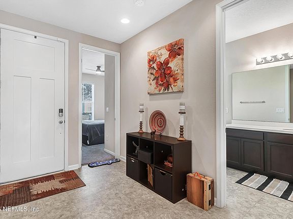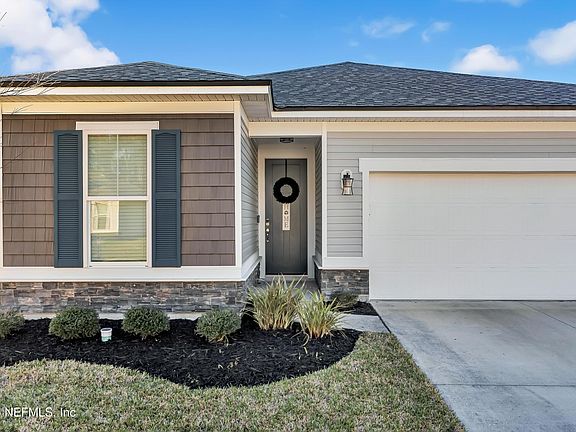 Welcome to this beautiful, like-new 4-bedroom, 2-bath home featuring a split bedroom floor plan for added privacy and functionality. Open concept with the kitchen opening to the living & dining rooms. The stylish kitchen includes espresso cabinets, stainless steel appliances, an island(great for baking with the family), glass backsplash, granite countertops and 2 walk in pantry closets, perfect for cooking and entertaining. Recessed lighting throughout enhances the home's modern feel. The primary suite includes a generously sized walk-in closet, providing ample storage space. Walk in shower with raised dual sinks. Sliding doors lead to a covered patio with an extended surface, making it an ideal spot for grilling, outdoor dining, or relaxing. Conveniently located just minutes from Oakleaf Town Center, you'll have easy access to shopping, dining, and entertainment. Don't miss this opportunity to have move-in-ready home with all the right features! Schedule your showing today!