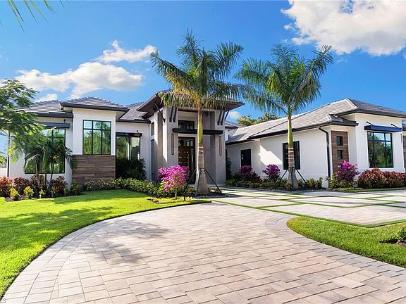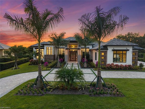 Enjoy tranquil modern elegance within this NEWLY CONSTRUCTED and custom-curated estate with IMMEDIATE GOLF MEMBERSHIP-INCLUDED! PLUS Water Views! This exceptional Estate Home has a FULLY FURNISHED interior and a luxury design package which includes carefully selected furnishings and decor for today's sophisticated modern trends. Perfectly situated within one of Naples most prestigious communities of Quail West Golf and Country Club, a golfers paradise. This Waterfront property has gorgeous Southwestern sunset views and an inviting outdoor lanai with a unique pool/spa design, fabulous for hosting. This property is meticulously designed with a modern coastal atmosphere and exceptional luxury details throughout. Includes premium finishes of large format porcelain accent walls, unique premium glass modern cabinetry, premium signature quartzite countertops, modern appliances, creative flooring, premium light fixtures and accent illumination making this a truly dramatic home to enjoy for relaxing or entertaining. High ceilings of 12-19 ft throughout with floor to ceiling windows accentuating views from the front and rear elevations, which embodies the truly creative architectural features. The oversized garage will accommodate four vehicles plus a golf cart and storage area.