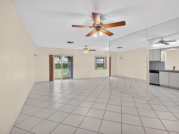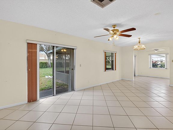 Corner villa offers 2 bedrooms, 2 baths, and a private garage, set on an oversized lot with a huge, serene backyard with an oversized back patio. This light-filled home features two screened patios--perfect for relaxing or entertaining in total privacy. Major updates include a new roof in 2018 and A/C in 2019, plus accordion shutters for added peace of mind. The extra-long driveway provides ample parking, and tile flooring runs throughout the entire home for easy maintenance. Residents enjoy resort-style community amenities including a pool, clubhouse, fitness center, tennis, and pickleball courts. Ideally located near shopping, dining, major highways, and just a short drive to the beach, this property offers the perfect blend of comfort, convenience, and Florida lifestyle.
