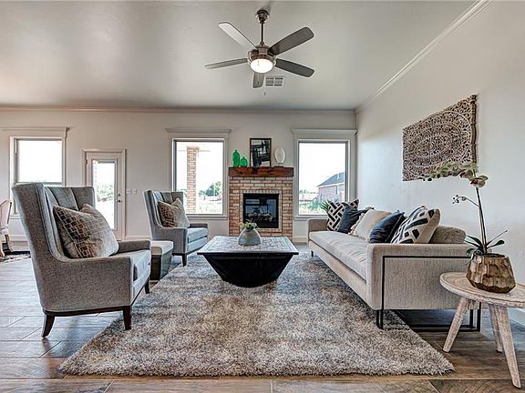 This lovely home is move-in ready, located in Meadows at MacArthur Park addition, Deer Creek School District! Beautifully built with great amenities. Living & kitchen area are open and spacious! Living has fireplace and lots of window for natural light. Kitchen has granite counter tops, breakfast bar, tons of storage, pantry and stainless steel appliances. Master suite has dual vanity, tub, shower and large walk-in closet. Large covered patio that is surrounded by a fully sodded yard with a sprinkler system and full guttering. Easy to show, schedule your showing today!