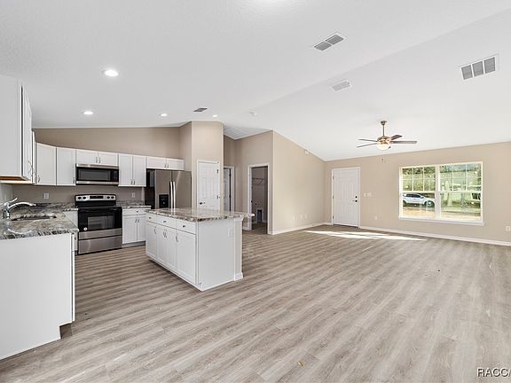 One or more photo(s) has been virtually staged. Home is complete!! This gorgeous brand-new home located in Citrus Springs is the ideal escape from the hustle and bustle of city life! With an open floor plan, pleasing neutral colors and vinyl plank flooring throughout, this 3-bedroom, 2-bathroom residence has all the charm and comfort any family could desire. Showcasing shaker style cabinets with granite counter tops in the kitchen, a washer/dryer hook up in the inside laundry for added convenience, plus a stainless-steel appliance package, this home is sure to impress. Enjoy your time in the neighborhood while nearby shopping, dining, medical centers and natural springs keep life exciting. Plus, its location near pristine rivers and springs allows for outdoor activities where adventure finds you!