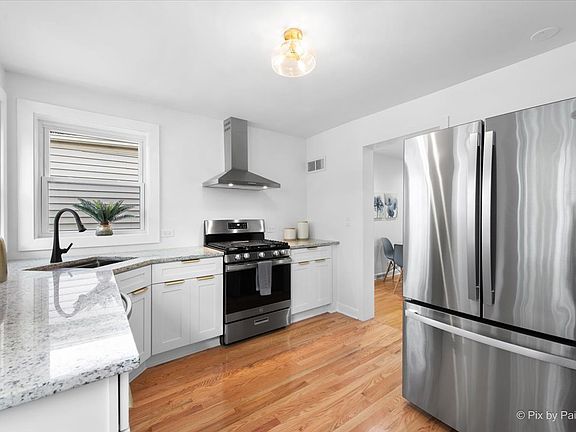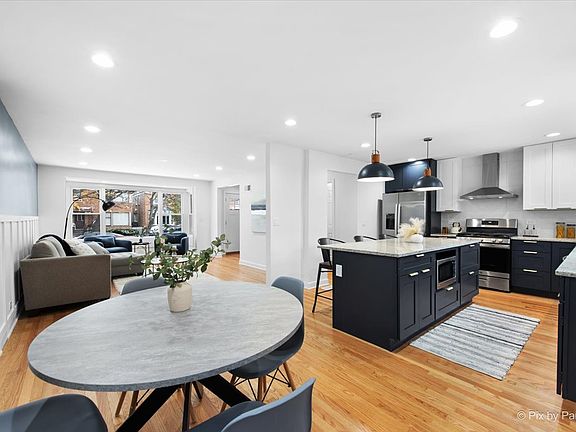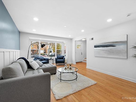 Welcome to this stunning and fully renovated 3-bedroom, 2.1-bath home featuring two kitchens and a full finished basement with an optional 4th bedroom or office. Nestled on a quiet, tree-lined street, this elegant two-story home boasts exceptional curb appeal with its brick-and-stone facade and fresh professional landscaping. Step through the inviting foyer and take in the gorgeous hardwood flooring that flows throughout both the main and second levels. The primary eat-in kitchen is a true showstopper, featuring new custom cabinetry, granite countertops, a massive island, and brand-new GE Sabbath mode appliances. An adjacent second kitchen mirrors these upscale finishes and provides convenient access to a refreshed deck and spacious backyard that's perfect for entertaining or multi-generational living. The enormous living room features an elegant bump-out design with nearly floor-to-ceiling windows that flood the space with natural light. A stylish powder room completes the main level. Upstairs, you'll find three oversized bedrooms, including a primary with dual closets, a custom feature wall, and private balcony - an ideal spot for morning coffee or watching the sun set. All bedrooms offer generous closets and share an elegant spa-like full bath with exquisite tilework and designer finishes. The fully finished lower level provides a cavernous recreation room, a 4th bedroom or home office, a beautiful full bath with walk-in shower featuring exceptional tile work , and a laundry/storage area. Located in a highly desirable area, this home offers easy access to Peterson and Hollywood Parks and is within the well rated Peterson Elementary attendance boundaries. It's also just one block from Joan Dachs Bais Yaakov School and minutes from Northside College Prep, Bais Yaakov High School of Chicago, Bnos Rabbeinu Girls High School, North Park University, and Northeastern Illinois University. With its modern updates, elegant finishes, and prime location, this home perfectly blends comfort, sophistication, and convenience. New windows, exterior walkways, landscaping, cabinetry/vanities, flooring, lighting, paint.