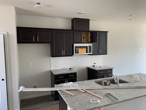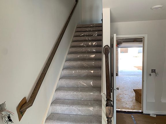 Manteo II townhome move-in ready soon! 3 bedrooms, including 1st floor bedroom and full bath. 3.5 bathrooms total. oversized garage on1stlevel. 9 ft ceilings on 2nd floor. large center kitchen island, granite countertops in kitchen, tile backsplash. gas range, microwave vented outside. Ring video doorbell included and smart door lock and smart thermostat. 2 bedrooms upstairs include owner's suite with walk-in shower in owner's bath and walk-in closet. Swimming pool community with a wide range of amenities include community garden, walking trails, existing and future mixed use commercial. River Bend Park with kayak access to Neuse River.