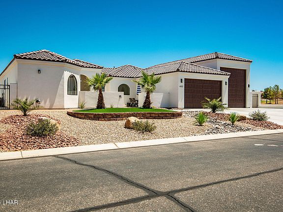Located at 6322 S Via De Oro, Fort Mohave, Arizona, this residence presents an attractive property in great condition offering a blend of both comfort and style, with the added elegance of golf course living. The living room is the focal point right at the entrance with its inviting space, gorgeous golf course views, and stylish decorative wall design. In the kitchen, culinary dreams come to life, a large kitchen island and kitchen bar provide ample space for meal preparation and casual dining. This is a true entertainer's space with its open concept and added wet bar feature to take your hosting to the next level! All bedrooms have an ensuite bathroom, offering all who reside their own private retreat. Outdoor enjoyment in both the front and backyard: large, covered backyard patio to enjoy the sunrise and golf course views or enjoy the beautiful Arizona sunsets from your front courtyard. This space was designed with functionality in mind, casita with a separate entrance and the main house offers 2 master suites. All bedroom spaces include outside access doors! The garage space is its own wow factor with full hook ups, Rv garage and additional two car garage.