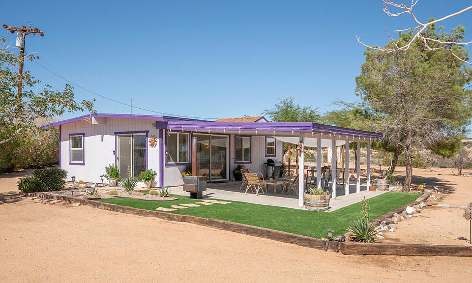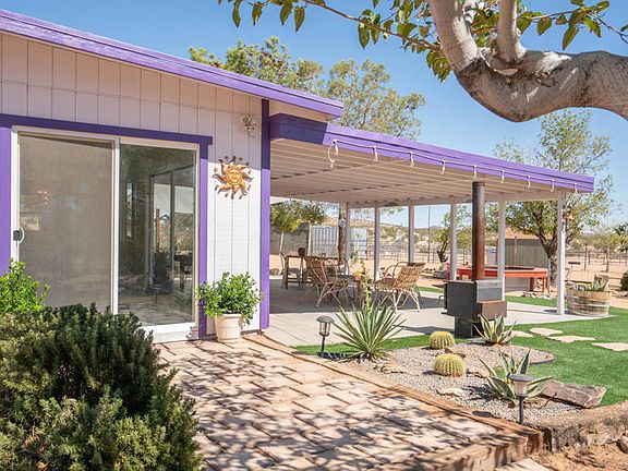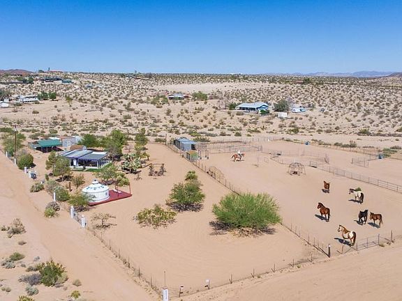 Calling all Horse Enthusiasts, Horse Trainers and those looking for a fabulous equestrian property. This wonderful Equestrian-Friendly Desert Retreat with your own Yurt on 5 Acres in Joshua Tree is it! Thoughtfully remodeled 1-bedroom, 1-bath home with a loft (approx. 660 sq. ft.) pairs modern comfort with true desert living. The open and inviting living room is spacious and has large picture windows that flood the interiors with natural light and frame sweeping mountain vistas. Outside, an expansive covered patio creates a generous setting for entertaining and lots of areas around the property to just sit, take a break enjoy the beauty of your surroundings. Property Highlights-Fully perimeter-fenced 5 acres: ideal for horse enthusiasts and animal lovers alike.-Equestrian facilities: 3 covered horse shelters with 50 ft paddocks, fencing and cross-fencing, round pen, turnouts, and a nice size tack shed. Lots of room for your horses to run and play or turn this property into a lovely training facility with lots of options for you and your horses. Lots of areas to ride and trails all over-Yurt with private deck: versatile bonus space perfect for guest accommodations, yoga, meditation, or creative work. - Outdoor amenities: low-maintenance landscaping with mature trees, rock/desert scape throughout, a cowboy soaking tub for beautiful sunny days or those gorgeous starry nights, and a rustic trellis-covered fire-pit area- Practical setup: RV hookups, storage containers, a large covered parking structure and all of it is flat usable land with tons of room to pull that truck and trailer in and out or to expand on the property. Small in size yet impressively efficient, this home delivers a seamless blend of indoor-outdoor living, rustic charm, and equestrian functionality. Welcome to an inviting, peaceful equestrian retreat in the heart of Joshua Tree.Buyer to verify all information. Buyer is advised to conduct all independent inspections and investigations of the property (including, without limitation, permits, square footage, lot size, boundaries, zoning/use, systems, and neighborhood rules) and to rely solely on Buyer's own findings. Seller and Brokers make no representations or warranties.